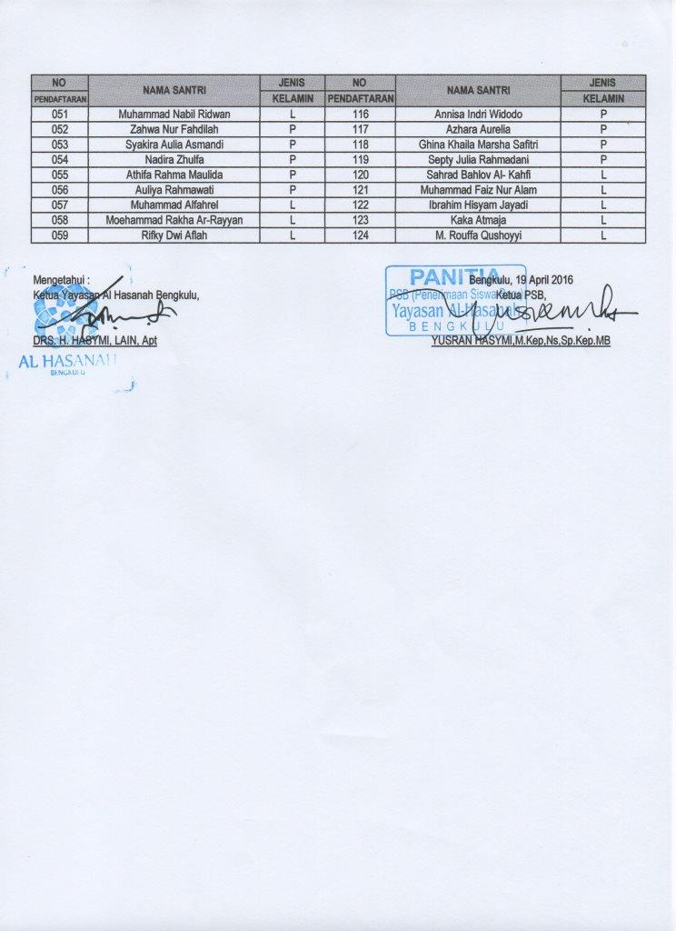 Berikut nama-nama calon santri SDIT Al Hasanah T.A 2016/2017 :